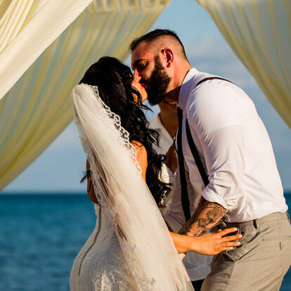 Políticas y condiciones: Todos nuestros precios de los paquetes son en dólares, sujetos a 15% de servicio. Todos nuestros paquetes aplican a un cargo mandatorio de $200 dólares por coordinación. Todas nuestras locaciones para ceremonia y eventos privados son en áreas externas. En caso de mal clima los respaldos están sujetos a disponibilidad. Todas las ceremonias incluidas en nuestros paquetes de boda son simbólicas (sin efectos legales). Todos nuestros paquetes están disponibles de 2 – 50 invitados. Invitados extras aplica un cargo de $8.00 usd por persona. En caso de requerir un paquete de bodas personalizado, por favor contactar al departamento de bodas para mayor información. El hotel requiere un mínimo de 80% de invitados hospedándose en el hotel con un mínimo de 3 noches. El brindis con vino espumoso al final de la ceremonia es para hasta 10 invitados. Propinas e impuestos no incluidos.